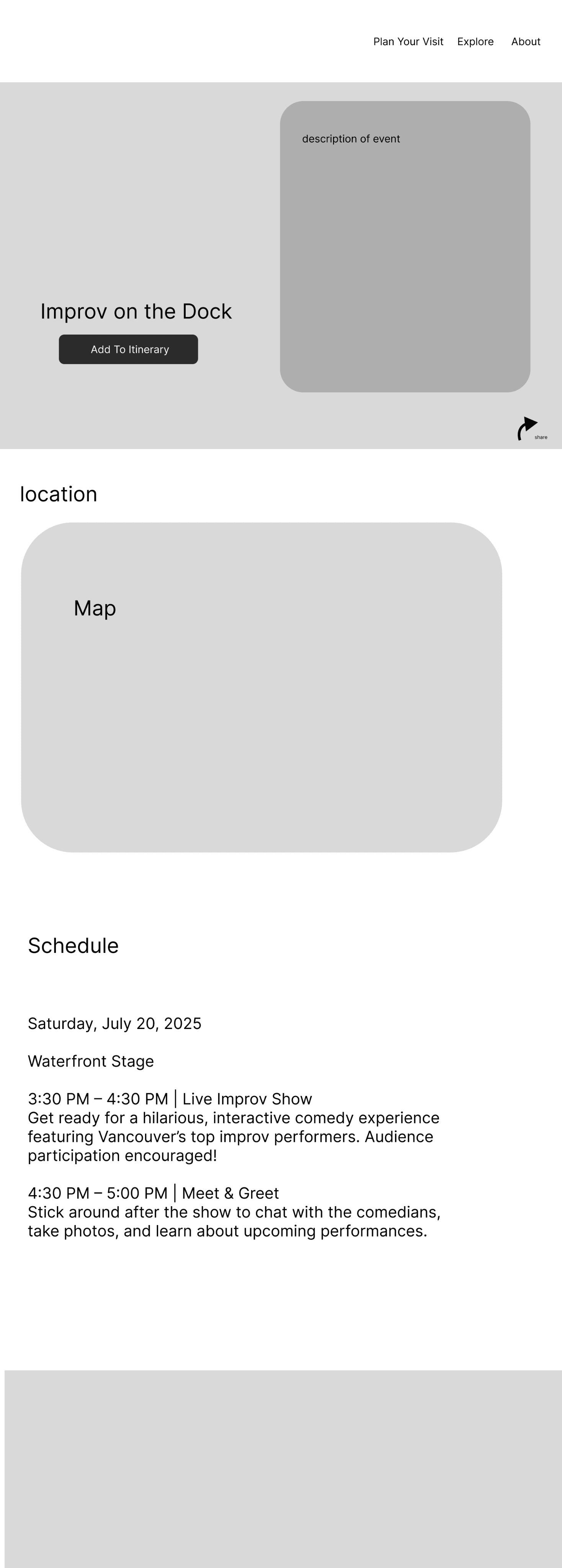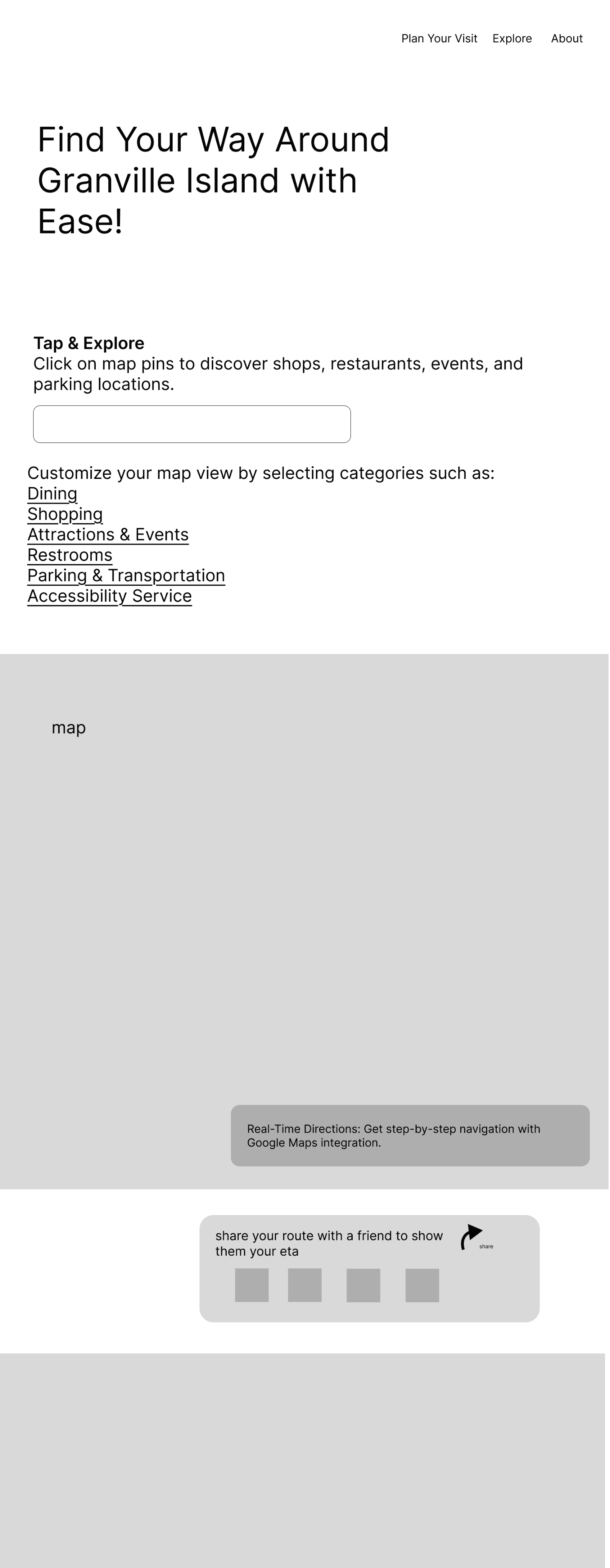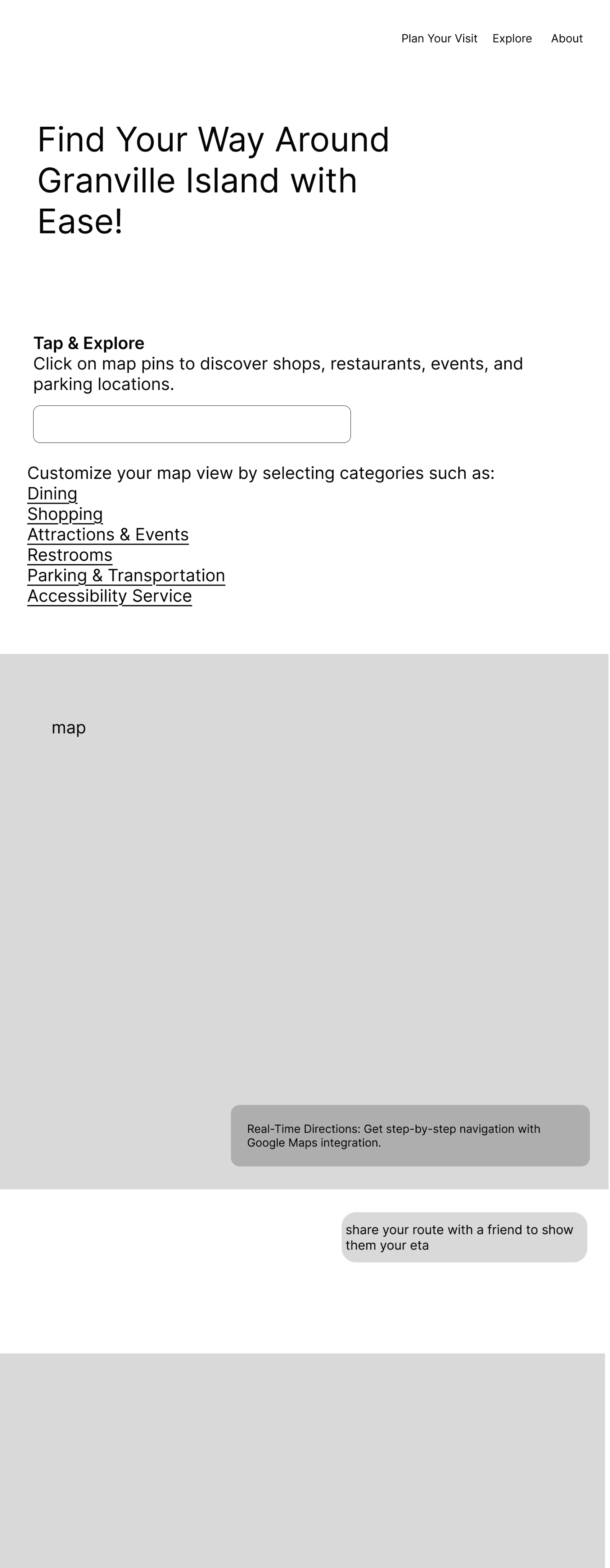 Methods: Structured interviews with 5 users who've visited Granville Island, task-based testing of wireframes, feedback analysis